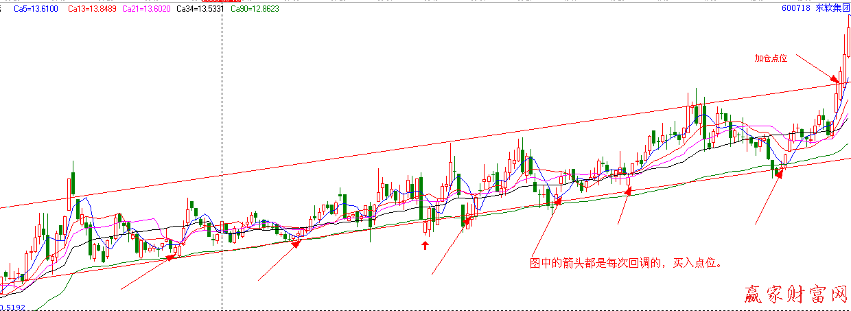 投資者如何找到最佳的買入點(diǎn)呢?當(dāng)股價運(yùn)行到波谷低價區(qū)附近時,成交量所減少,并逐漸減至均量之下;而后股價觸及上升通道的下軌反彈上漲,成交量逐漸增大,并逐漸增至均量之上,此時,如果出現(xiàn)連續(xù)上漲的陽線,那么就是投資者的最佳買入時機(jī)了。