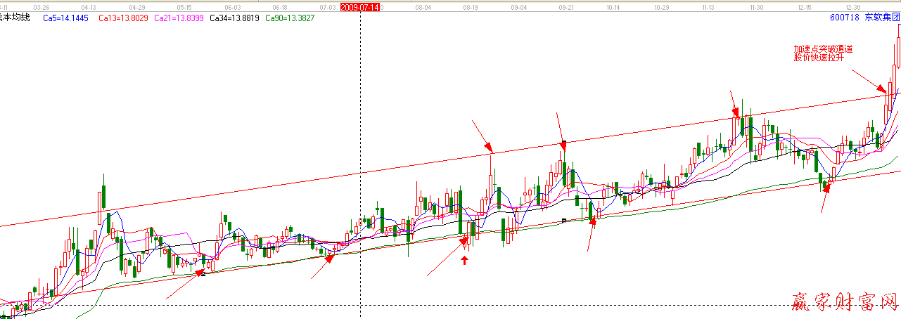 波軸:是指波段行情中,多空雙方力量相對(duì)平衡的位置,當(dāng)股價(jià)上漲至波軸上后,賣(mài)出的趨勢(shì)將逐漸增大,當(dāng)股價(jià)下跌至波軸之下后,買(mǎi)進(jìn)的趨勢(shì)將逐漸減少。