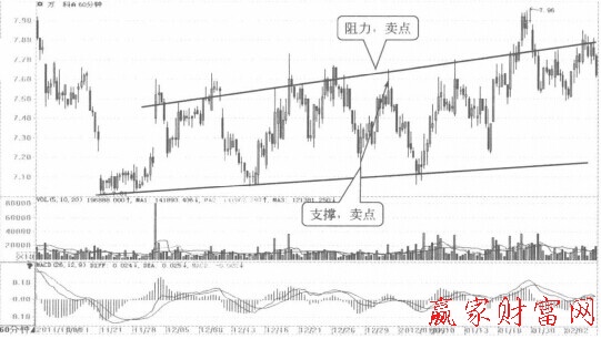 如圖2所示,在上漲通道里面,投資者可于2011年12月28日下午兩點買入該股。隨后該股于2012年1月4日上午10點左右達到通道高點,投資者此時可以賣出。