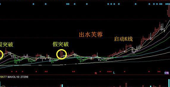 觀察股價(jià),如果長期在季均線之下,且橫盤震蕩,有一天,量能配合突破及均線并站穩(wěn)季均線,這一根陽線,便是芙蓉出水;