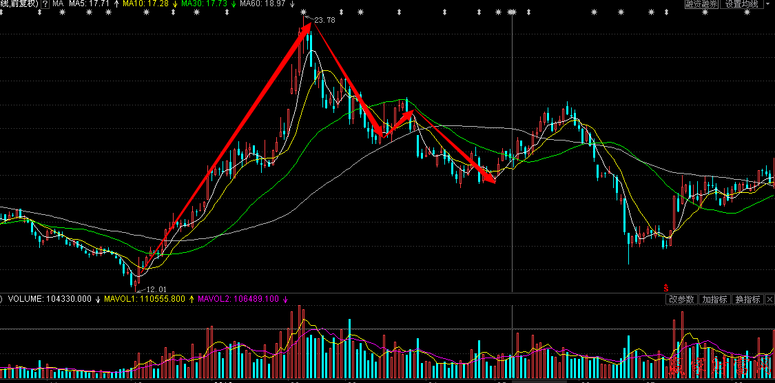 000623吉林敖東屬于醫(yī)藥行業(yè)板塊個股,2012年12月4日創(chuàng)出12.01的低點,之后主力開始拉升,量價齊升均線呈現(xiàn)多頭排列,一直到23.78元長上影到達市場頂部。拉升幅度11.77元。之后開始調(diào)整,調(diào)整形態(tài)幅度是7.32元,7.32/11.77=0.622,接近黃金比例的0.618.