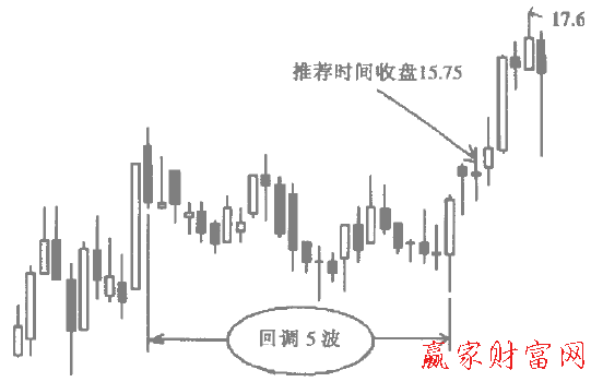 一般在底部剛剛啟動(dòng)后出現(xiàn)的回調(diào),經(jīng)常以5波的方式出現(xiàn),如果是回調(diào)三波或一波就開(kāi)始上升,未來(lái)的回檔也經(jīng)常會(huì)很深。如果超過(guò)5波,則有可能演化成下跌行情。如下圖所示: