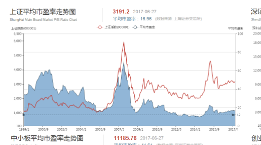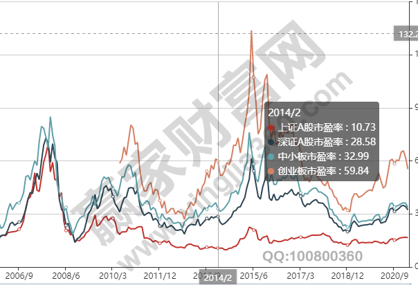 在A股市場中,使用平均市盈率來看市場,包含深圳成指的平均市盈率、 創(chuàng)業(yè)板指數(shù)市盈率、全市場平均市盈率、 中小板指數(shù)市盈率、上證指數(shù)的平均市盈率。