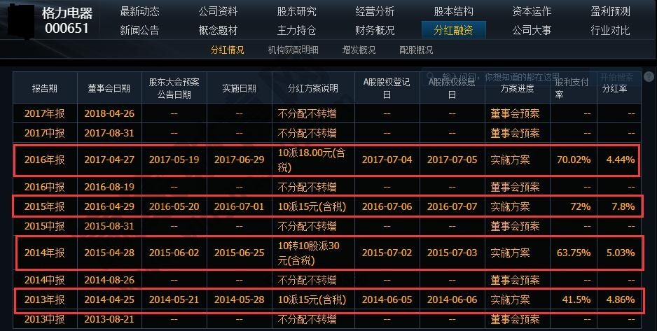 上圖中,董以往都是同股東分享企業成長帶來的收獲,2017年無分紅,今日跌停價45.06元開盤。有網友翻出當年董明珠大鬧股東大會的舊事,當時因為中小股東反對董明珠收購珠海銀隆,董明珠曾經怒噴自己進來竟然沒人鼓掌,就算5年不分紅也沒人拿自己怎么樣。不過那是2016年底的舊事,2017年也依然分紅了,我覺得就是開開玩笑的,畢竟是世界級的企業家,不會這么小心眼。