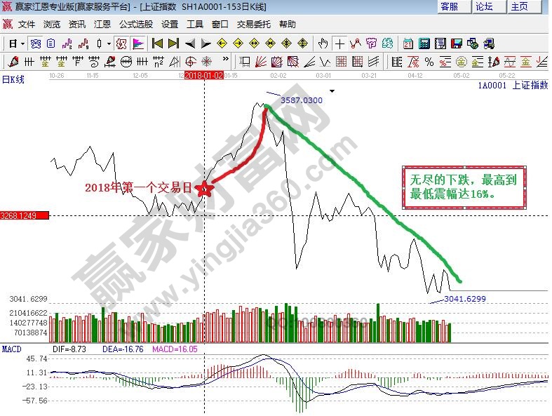市場先生答:注意看圖,2018年1月,上證指數有一個明顯的上沖動作。今年上證開盤點位在3307點,最高上沖到3587點,升幅8.4%。而截今日4月26日,收盤在3075點,較年初下跌7.1%。一高一低,落差近16個百分點。
