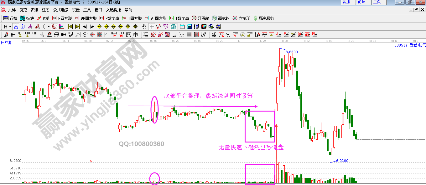 3. 成交量:有的個(gè)股在經(jīng)歷長(zhǎng)時(shí)間的縮量下調(diào)之后,已經(jīng)跌無(wú)可跌,這時(shí)候出現(xiàn)異動(dòng),一種可能是主力在試盤(pán),出現(xiàn)拉升之后,查看市場(chǎng)的反應(yīng),如果反應(yīng)不強(qiáng)烈,沒(méi)有跟風(fēng),就會(huì)繼續(xù)底部震蕩,這樣的上漲沒(méi)有持續(xù)性,并不是狙擊的最好選擇,要注意甄別。如果底部區(qū)域已經(jīng)已經(jīng)有過(guò)幾次突然放量拉升,然后調(diào)整橫盤(pán),那就是主力已經(jīng)試盤(pán)過(guò)了,再出現(xiàn)異動(dòng)很可能就是一波上漲的啟動(dòng)位置了,這樣的短線異動(dòng)很可能給出短時(shí)間的較大利潤(rùn)。比如置信電氣: