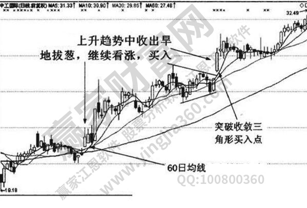 從中期最低點開始,個股在連續陽線中連續上漲(最多夾雜一兩條漲停小銀線)。當累計漲幅達到30%以上并見頂時,回落至第一波0.382、0.5、0.618黃金分割位。是短線最好的切入點你可以大膽分批買入。