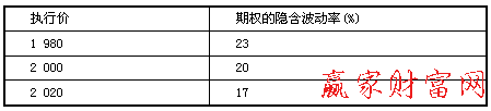 假設X指數期權存在反向波動率斜率,X指數期權的波動率均值為16%,各個執行價的期權的隱含波動率見下表。