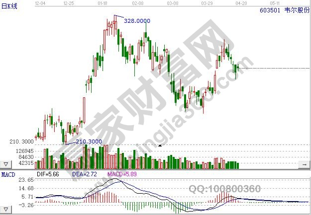 韋爾股份的股票代碼是603501,公司的主營(yíng)業(yè)務(wù)是半導(dǎo)體機(jī)器的研發(fā)和銷售,主要產(chǎn)品有七百多個(gè)產(chǎn)品型號(hào),包括功率器件、保護(hù)器件、集成電路等,公司現(xiàn)在的股票價(jià)格是279.79元。
