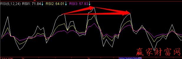 強(qiáng)弱指標(biāo)理論認(rèn)為,任何市價(jià)的大漲或者大跌,均在0—100之間波動(dòng)。根據(jù)常態(tài)分析,認(rèn)為RSI值在30-70之間的變動(dòng)屬正常情況,在80—90時(shí),被認(rèn)為市場(chǎng)已達(dá)超買(mǎi)狀態(tài),至此市場(chǎng)價(jià)格自然面臨回落調(diào)整;而在10—20時(shí),被認(rèn)為市場(chǎng)已達(dá)超賣(mài)狀態(tài),至此市場(chǎng)價(jià)格自然面臨企穩(wěn)回升。但投資者可能會(huì)發(fā)現(xiàn):有時(shí)RSI在80以上時(shí),股價(jià)仍不斷上揚(yáng),因此僅用是否通過(guò)80來(lái)劃分股價(jià)是否超買(mǎi)來(lái)判斷頂部,不太可靠。因此我們就應(yīng)該尋找其他規(guī)律進(jìn)行判斷。