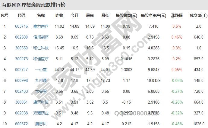 除此之外,互聯網醫療概念股還包括貴州百靈002424、潤達醫療603108、海南海藥000566、翰宇藥業300199、國藥一致000028、一心堂002727、康美藥業600518等。