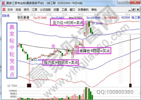 接著,什么時間買賣。答:當股價跌落到支撐位,且時間窗口臨近的時候買;當股價上漲到壓力位,且時間窗口臨近的時候賣。江恩認為,時間是決定市場走勢最重要的因素。通過對個股時間周期的研究,可以提前計算個股可能發生趨勢轉變的時間,在時間變盤點買賣股票能更有效的提升資金的使用效率。贏家時間點分析工具,推薦學習:等距時間周期線、黃金時間周期線、贏家輪中輪變盤點、自定義周天時間線等。(參考下圖)