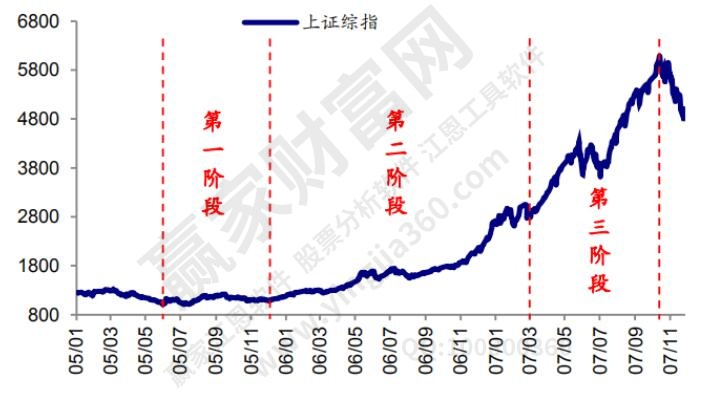 第二次牛市是交易制度改革帶來的。從1994年的326點上升到2001年6月的2245點。當時為了規避漲跌停板的風險,從1995年開始,a股交易制度進行了改革,從T+0和無漲跌幅限制的交易制度,改為T+1,每日漲跌幅限制為10%。這樣的交易系統讓股市的漲跌更受限制,能夠更好地保護了股市投資者的利益。這種制度紅利,讓股市從1994年最低點326點開始慢慢啟動,走出了7年的慢牛走勢,到2001年6月漲到最高點2245點。可以看出,在這波牛市中,上證指數上漲了近6倍,這種大牛市也讓許多人賺了很多錢。