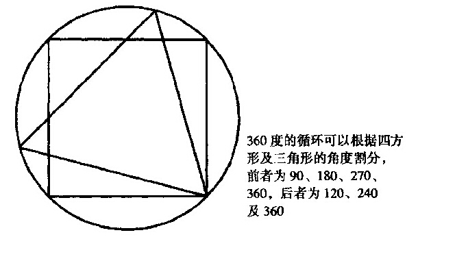 江恩將一個(gè)圓形360度看為市場的時(shí)間及價(jià)位的循環(huán),而三角形及四方形則在其中產(chǎn)生作用。