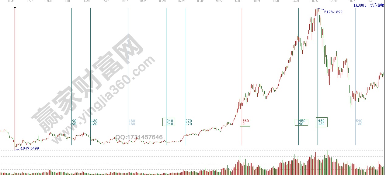 如果以市場的重要頂部及底部時(shí)間作為計(jì)算的起點(diǎn),120天、240天及360天都可能成為轉(zhuǎn)勢時(shí)間,上述日期即可指交易日,亦可指自然日(包括星期六、日及假期)