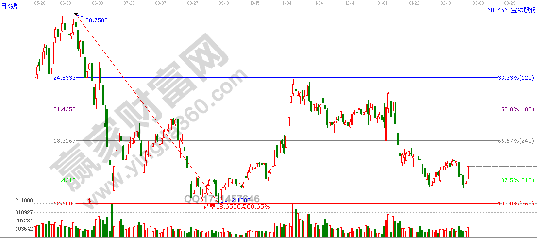因此,在金融市場中價位運行周期和漲跌幅比率可以用統一標準劃分。在一分為二的基礎上,又有一分為三,一分為四,一分為五,一份為六,一分為八,一分為十六,一分為三十二……這些重要的切割點,而這些切割點和時間周期的劃分一一對應。一分為二對應180°和50%,360°與100%;二分為四對應90°與25%,180°與50%,270°與72%,360°與100%……