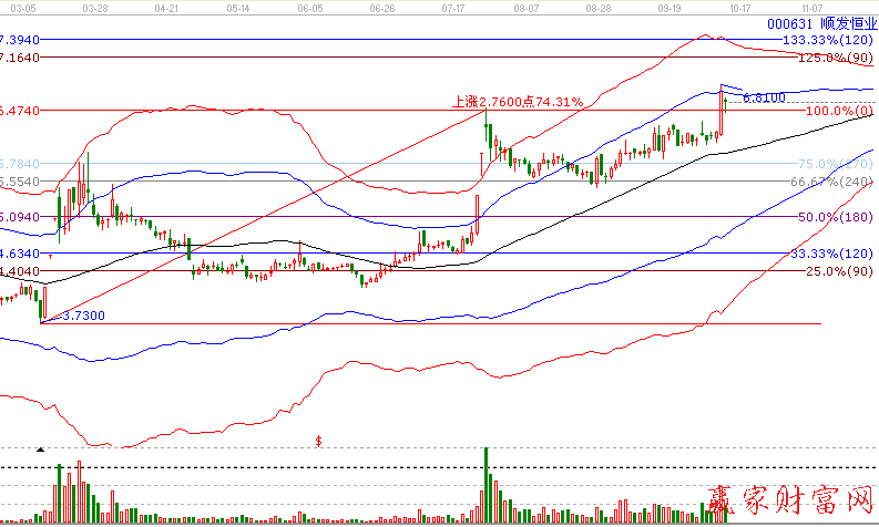 下面我們來分析分析000630順發恒業該股在最近一段時間波段百分比的活用。