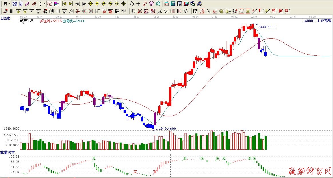 ☆依據贏家乾坤K線提示:大盤處于藍色區間,看空做空。