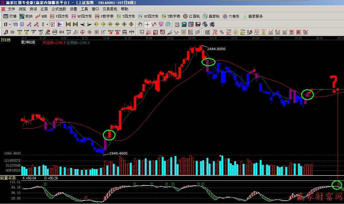 ★依據(jù)贏家江恩工具乾坤k線提示:指數(shù)K線變成紅色提示進(jìn)入安全區(qū)域看多,如圖下圖;
