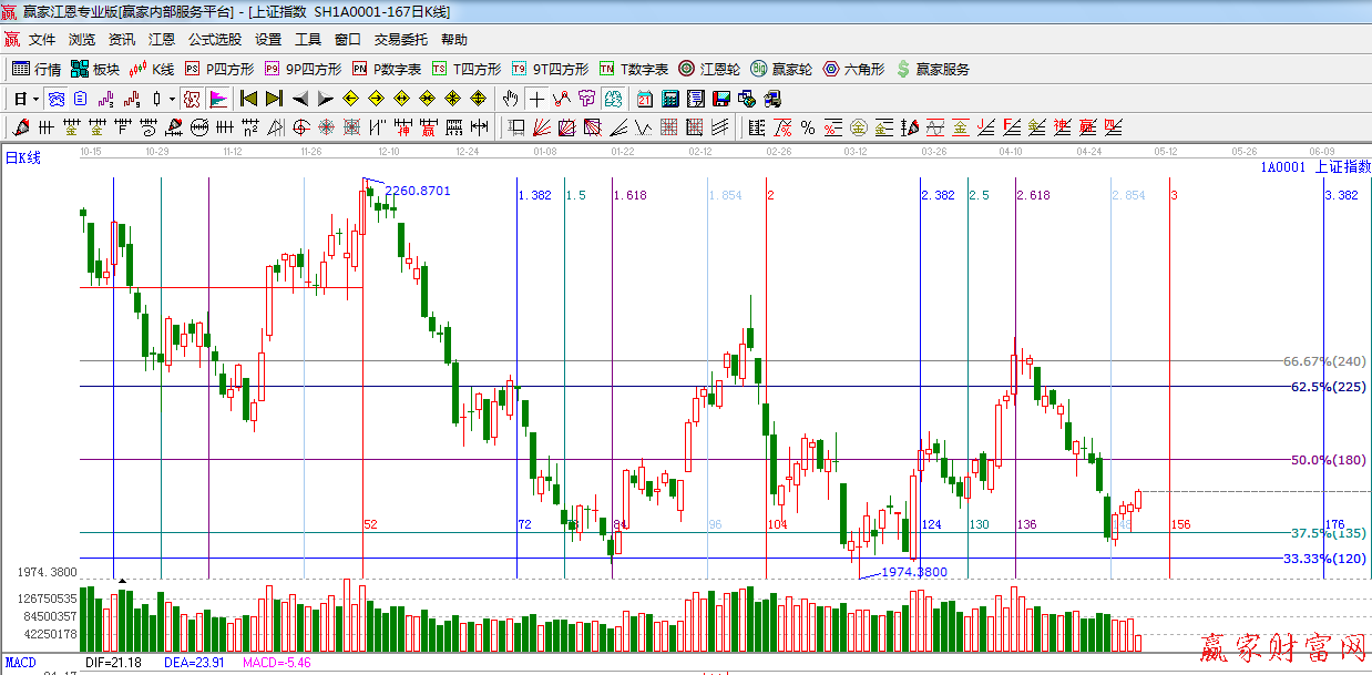 ☆依據贏家江恩系統極反通道提示:生命線之下,趨勢弱勢,看空。