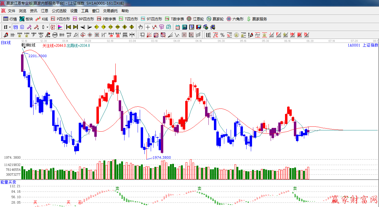 ☆依據(jù)贏家江恩系統(tǒng)能量買賣提示:目前綠色能量柱逐步消失,處于多空臨界點,短期謹慎看多。