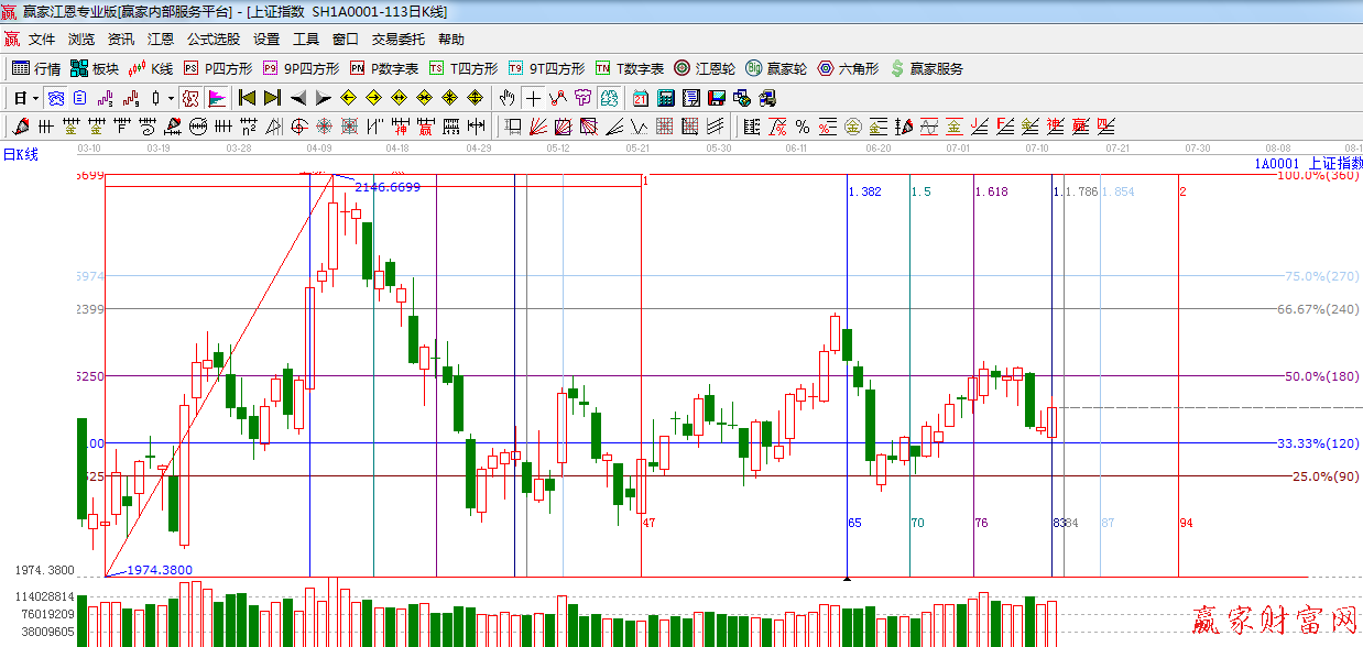 ☆依據贏家江恩系統黃金時間周期線提示:時間窗口為7月11日,14日,下周關注17號。