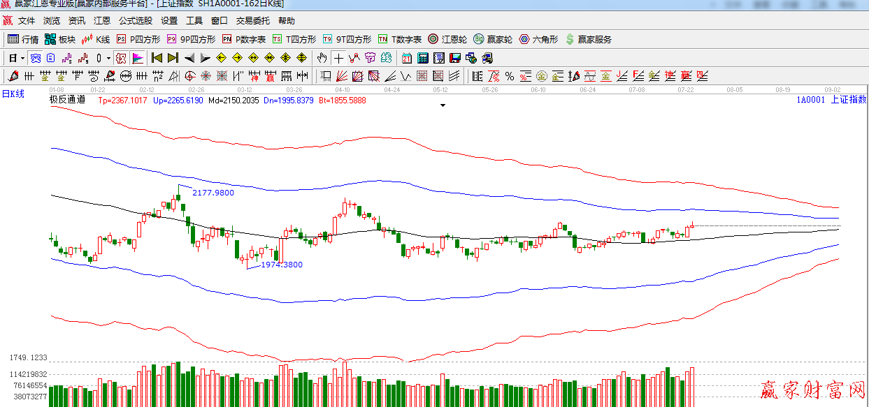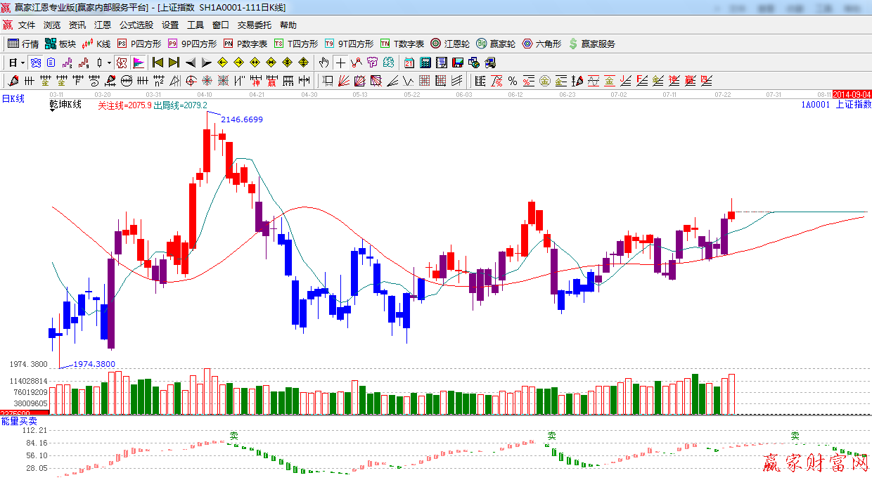 ★依據(jù)贏家江恩系統(tǒng)極反通道提示:生命線之上趨勢強勢,短期阻力依然是中位線2080附近。