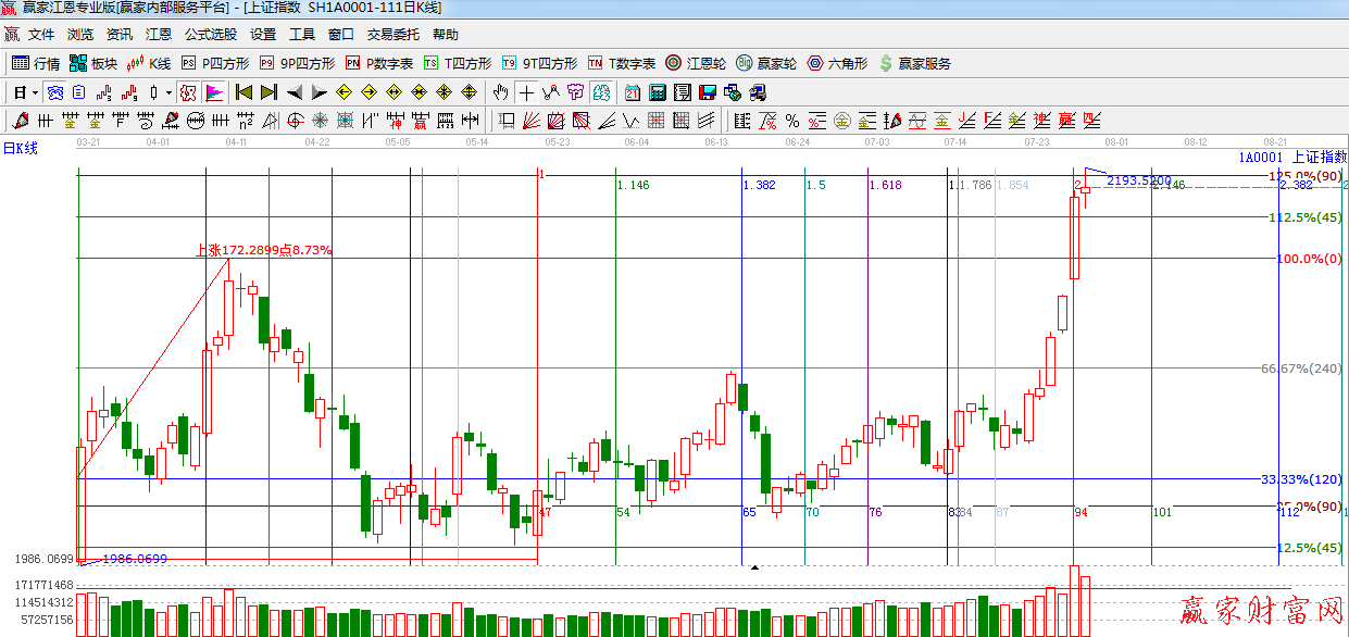 ☆依據贏家江恩系統黃金時間周期線提示:7月28日是前期提到的時間窗口,短期下一時間窗口是8月06日