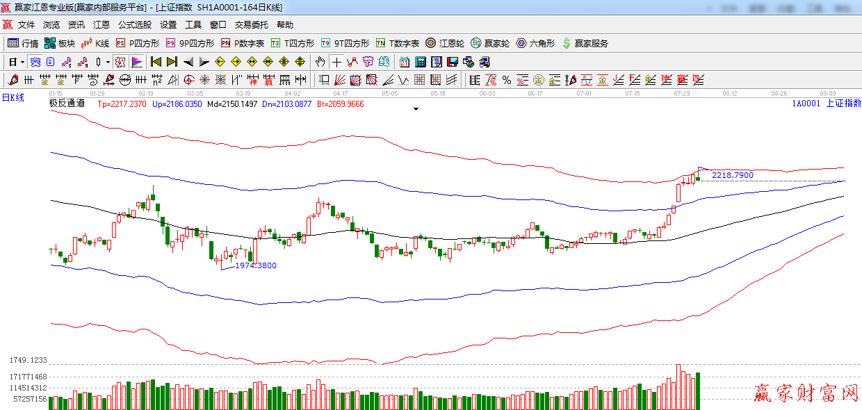 江恩看盤綜述:依據贏家江恩技術工具分析得出:周五指數在極反通道外軌阻力線遇阻回落,收倒垂頭線,量能同比放大,預計大盤短期將小幅下探,下方強支撐是江恩45度2168點,整體看多趨勢不變,操作上,合理控制倉位,做好高拋低吸。