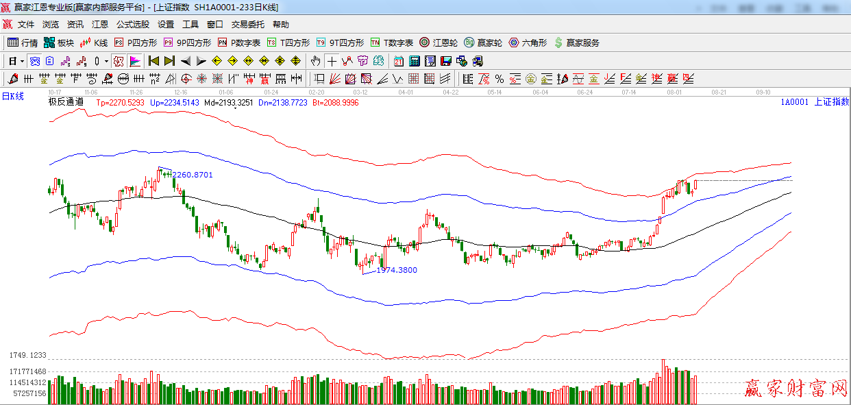 ★依據贏家江恩系統極反通道提示:指數高開一路震蕩上行,關注外軌線2242點阻力。
