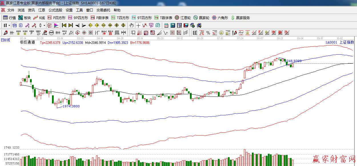 江恩看盤綜述:依據(jù)贏家江恩技術(shù)工具分析得出:指數(shù)震蕩反抽,極反通道藍(lán)色外軌線,成交量漸趨萎縮,外軌線是2221點(diǎn),此位置不能放量收復(fù),市場(chǎng)短期將仍以震蕩反復(fù)為主,操作,謹(jǐn)慎為主,做好高拋低吸。