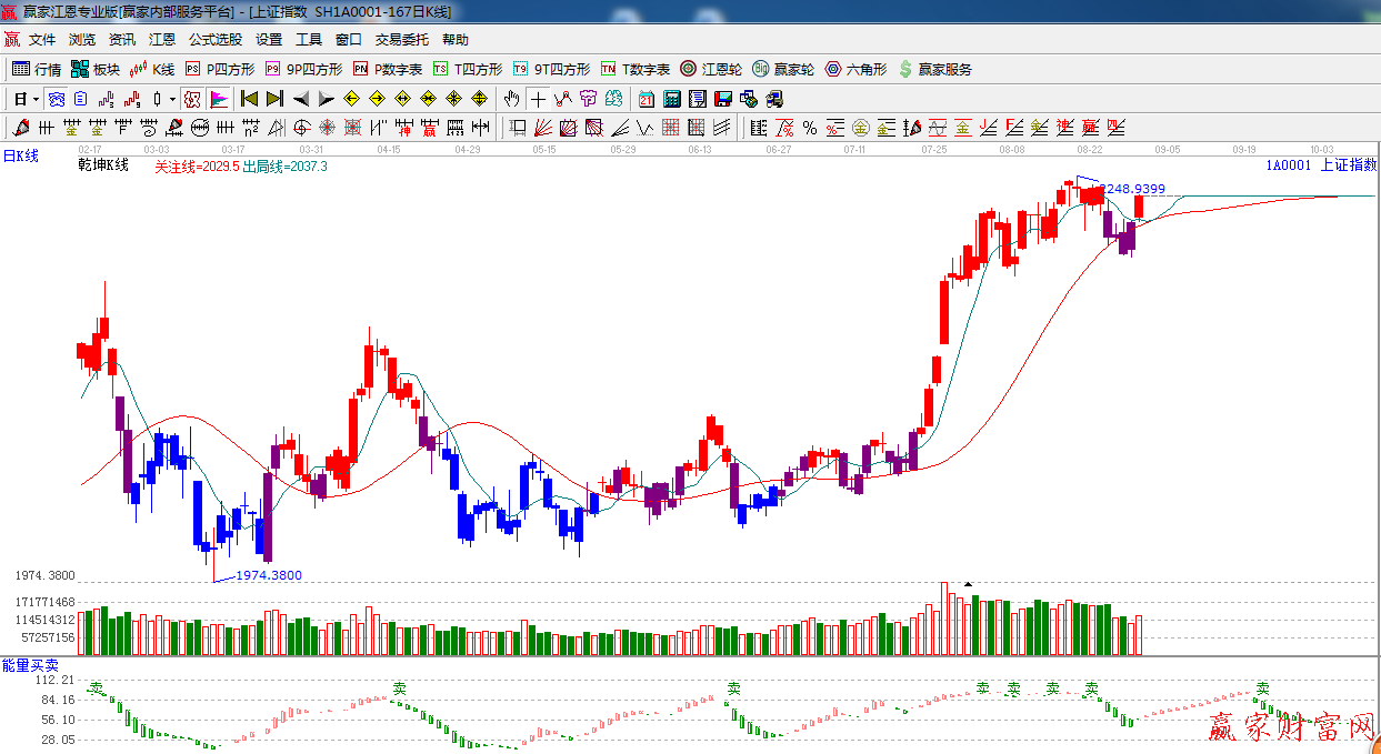 ★依據贏家江恩系統乾坤K線提示:k線由紫色轉入紅色k線,進入安全可操作區域,短期看多。