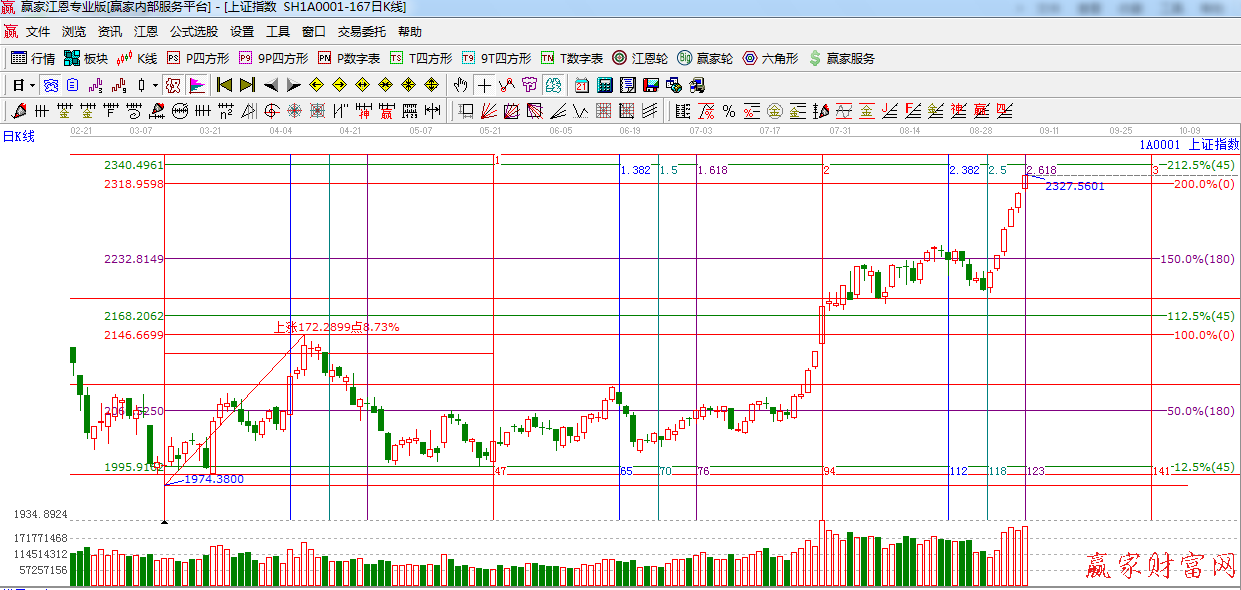 ☆依據贏家江恩系統黃金時間周期線提示:上周五9月5日是前期提到的時間窗口,短期留意盤面變化。