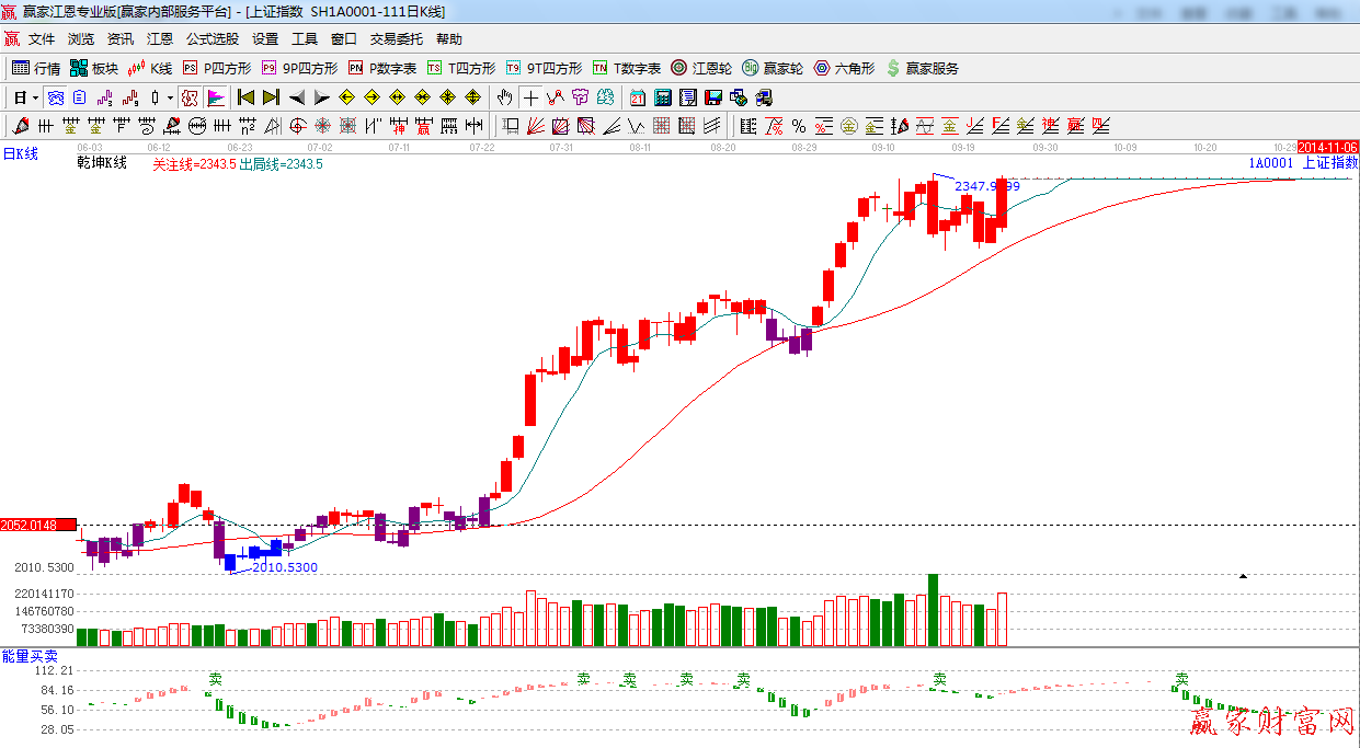 周三前一小時(shí),指數(shù)低開高走,突破短周期60分周期生命線2312點(diǎn),繼續(xù)放量上 行,終盤以中陽線報(bào)收,截止收盤,滬指報(bào)2343.57點(diǎn)漲1.47%,深成指報(bào)8100.22 點(diǎn)漲1.69%。