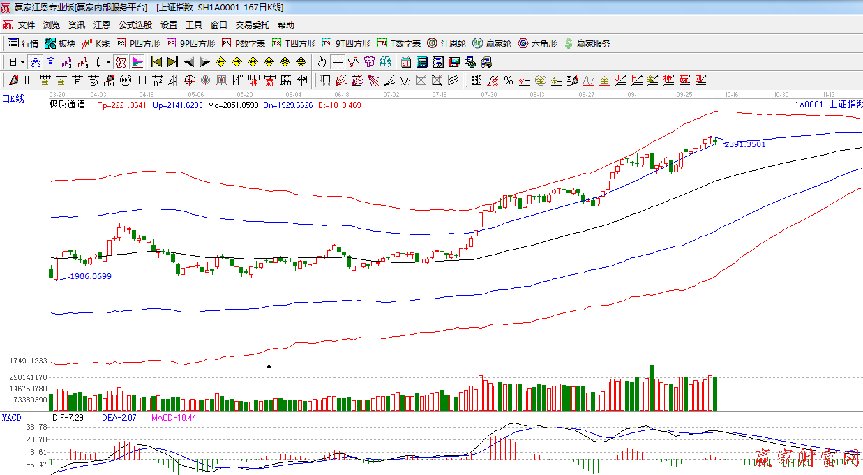 江恩看盤(pán)綜述:依據(jù)贏家江恩技術(shù)工具分析得出:今日指數(shù)圍繞外軌線(xiàn)震蕩,終盤(pán)以陰十字星報(bào)收,近期指數(shù)高位滯漲以及盤(pán)中震蕩加劇,而且macd有高位背離的走勢(shì),,下周重點(diǎn)關(guān)注日線(xiàn)藍(lán)色外軌線(xiàn)的得失,此位置一旦破位,預(yù)計(jì)市場(chǎng)會(huì)出現(xiàn)幾天的日線(xiàn)級(jí)別調(diào)整,但以中線(xiàn)而言,短線(xiàn)的調(diào)整并不改變反彈趨勢(shì),目前操作策略上做好倉(cāng)位的調(diào)整保持3-5成左右。