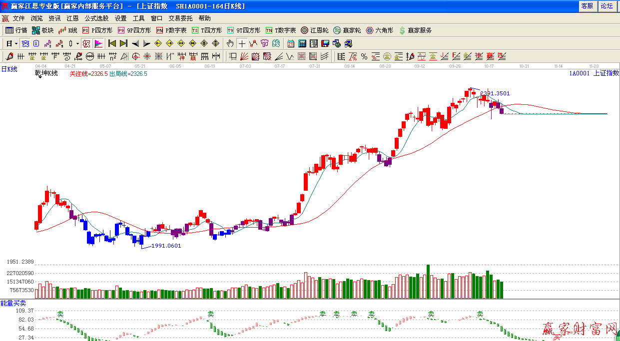 ☆依據贏家江恩系統乾坤K線提示:紫色警示信號,收盤破位紅色關注線,短期謹慎為主。