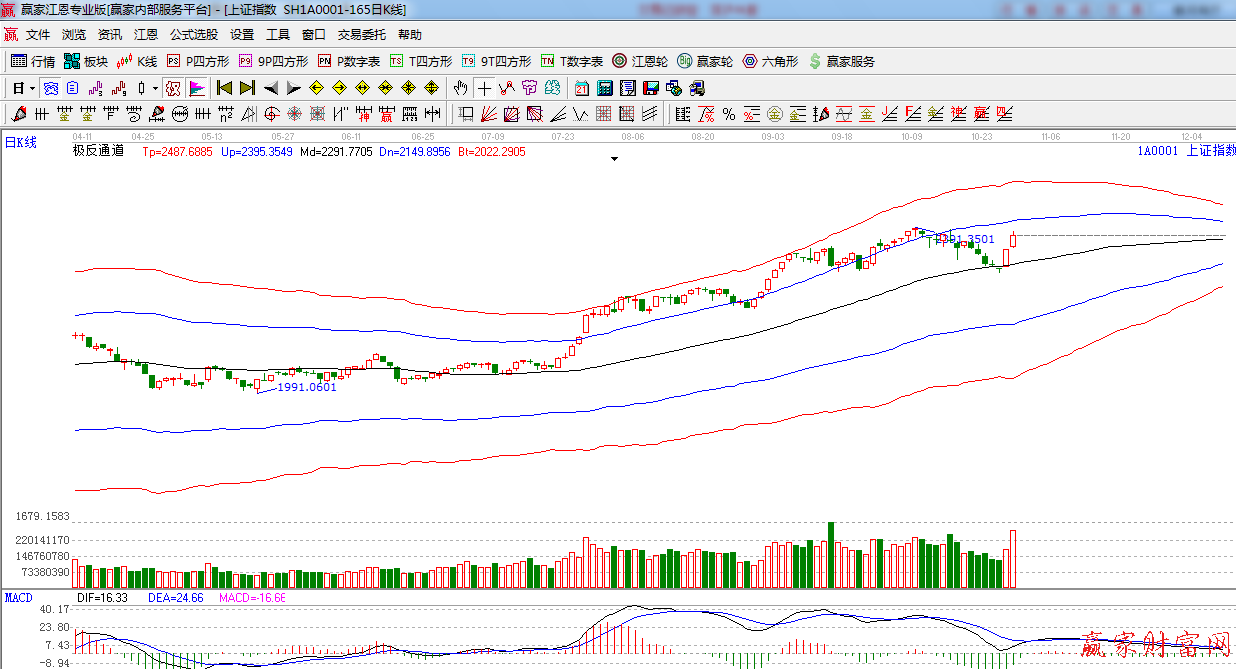 極反通道提示:受消息影響,指數(shù)繼續(xù)放量上行,上方阻力是在2410點(diǎn),短線謹(jǐn)慎看多。
