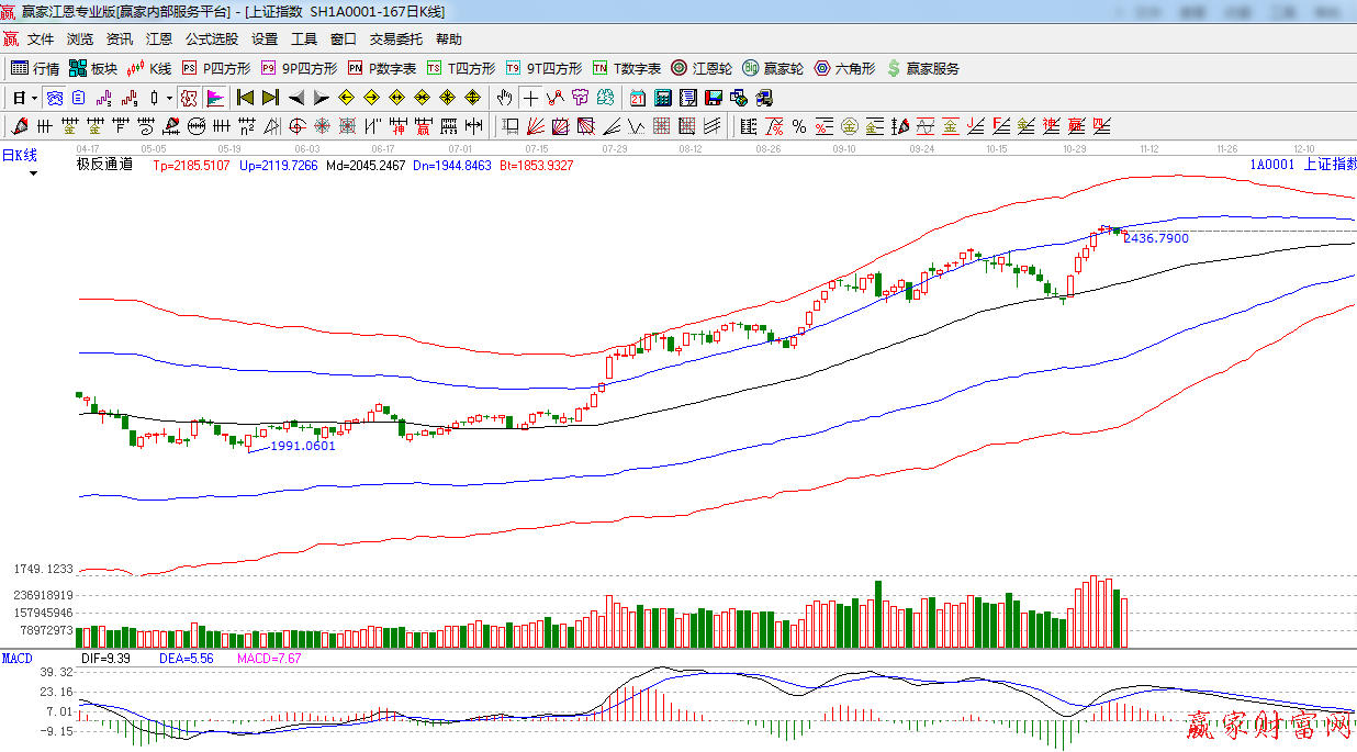 ★依據贏家江恩系統極反通道提示:今日回踩30分鐘生命線后,反彈,日線處于外軌線下方,短期謹慎看多。