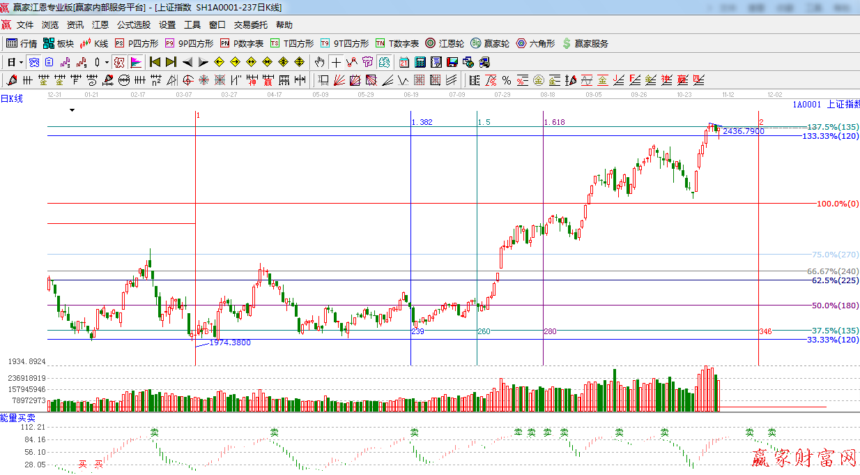 ☆依據贏家江恩系統波段百分比提示:盤中破位120度2410點,尾盤收回,明日下方支撐依然是120度2410點,上方阻力135度2428點,180度是2480點。