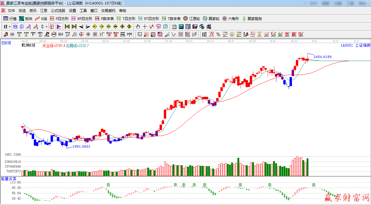 ★依據贏家江恩系統乾坤K線提示:回踩綠色出局線,短期謹慎為主。