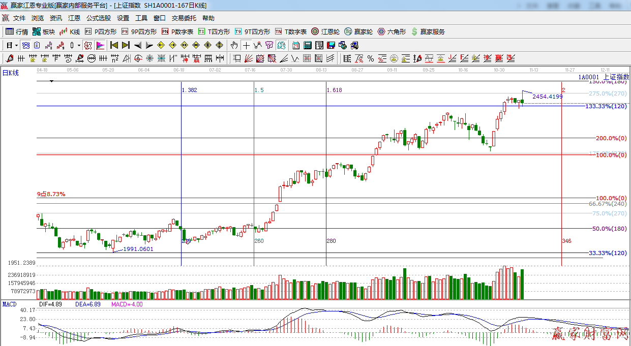 ☆依據贏家江恩系統黃金時間周期線提示:重點關注時間窗口是11月24日。