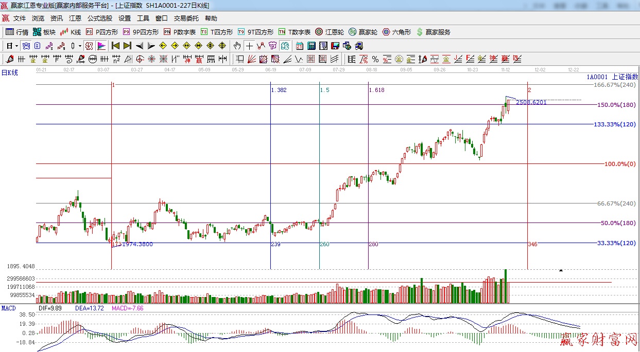 ★依據贏家江恩系統極反通道提示:回踩短周期生命線支撐,隨后縮量上揚,日線外軌線支撐是2460點,短期看多。