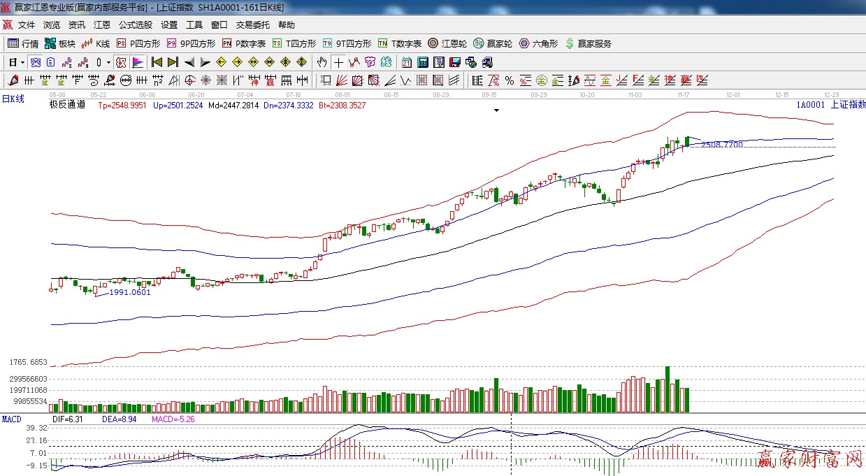 ★依據(jù)贏家江恩系統(tǒng)極反通道提示:收盤破位極反通道藍(lán)色外軌線,短線謹(jǐn)慎看多。