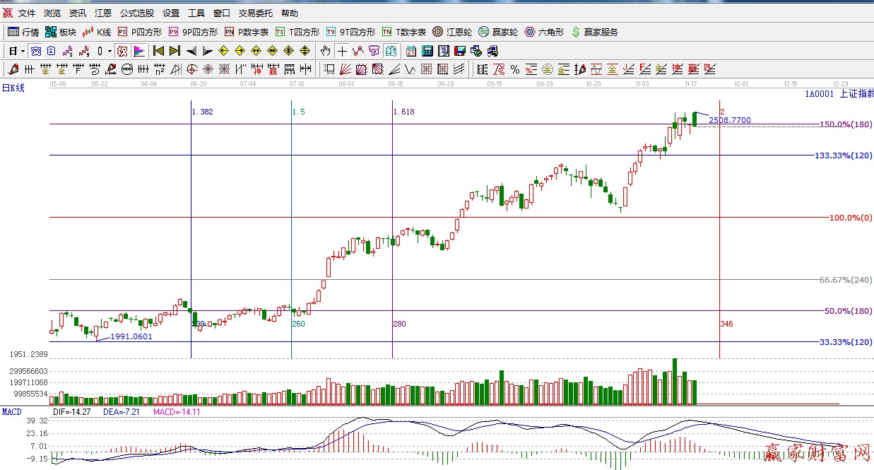 ☆依據(jù)贏家江恩系統(tǒng)黃金時(shí)間周期線提示:重點(diǎn)關(guān)注時(shí)間窗口是11月24日。