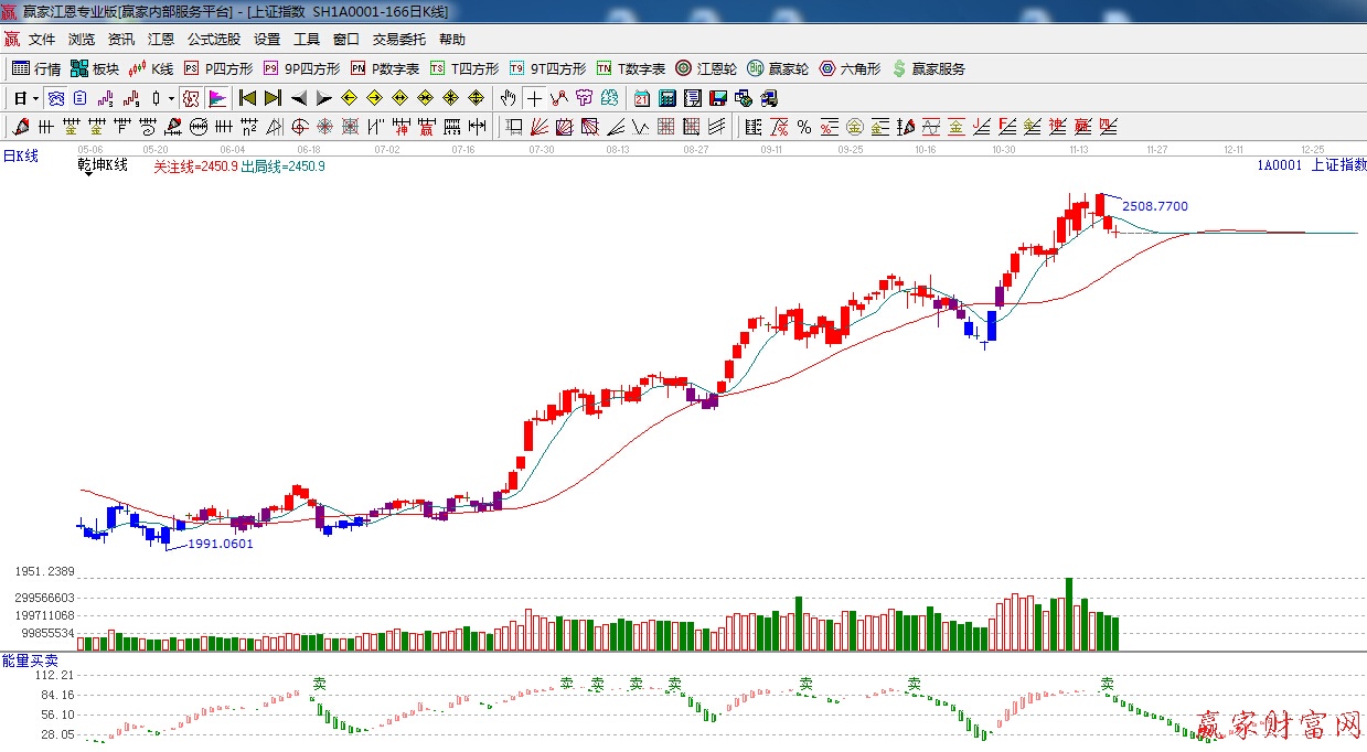 ☆依據贏家江恩系統能量買賣提示:有“賣”字出現,處于綠色看空能量柱,短線看空.