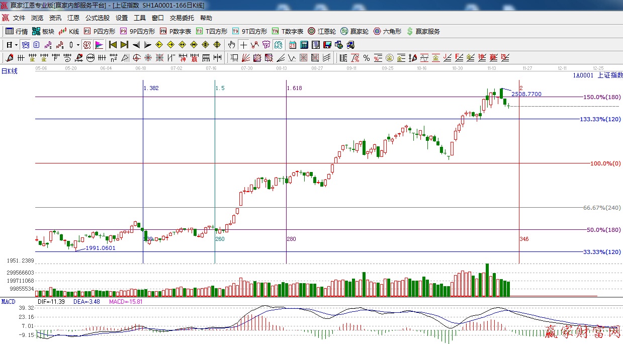 ☆依據贏家江恩系統黃金時間周期線提示:重點關注時間窗口是11月24日。