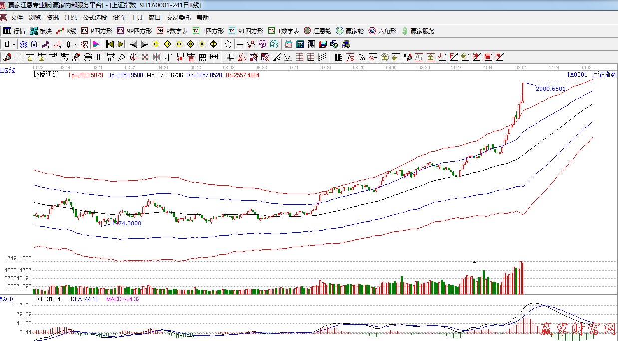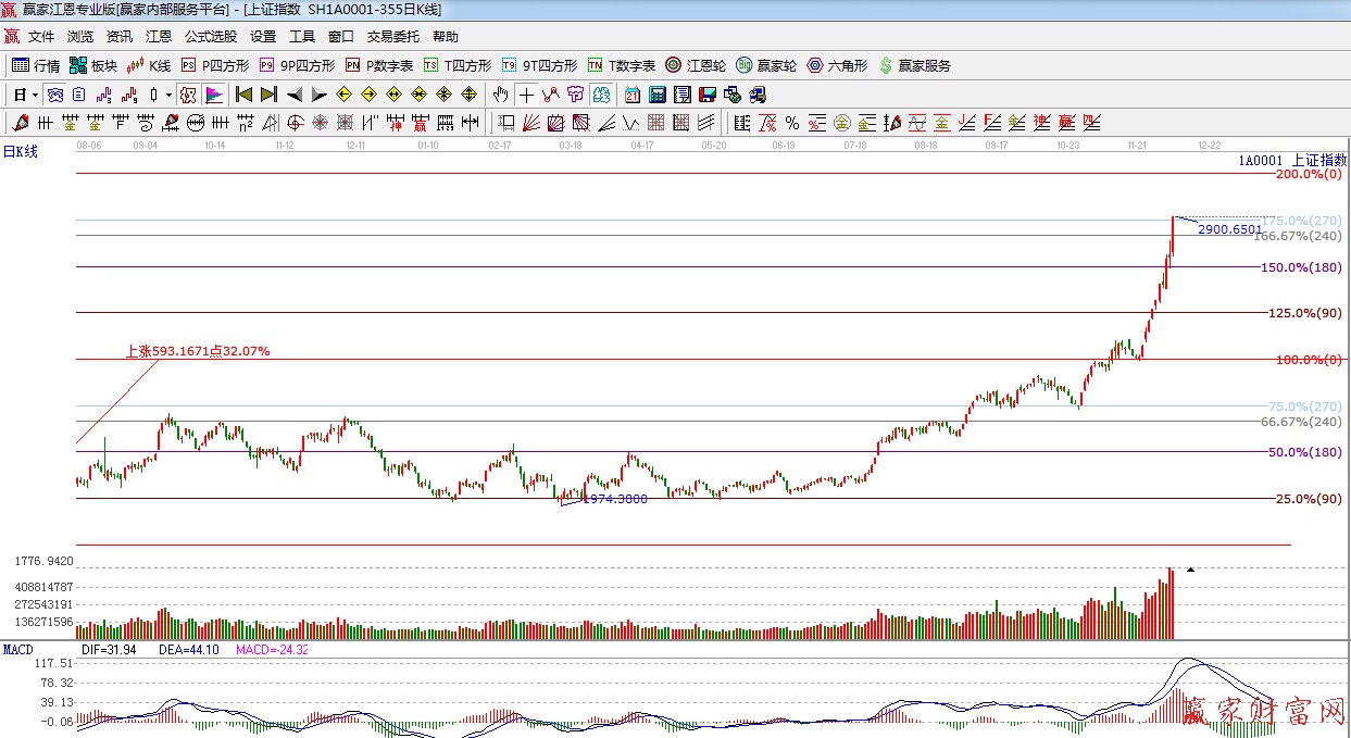江恩看盤綜述:依據贏家江恩技術工具分析得出:滬深兩市繼續保持逼空式上漲,放量突破江恩三分位240度線,此 位置轉換為支撐,回踩不破將會繼續向上拓展空間,上方0度位置3034點,目前只要券商不倒,大盤就能繼續上漲,操作 上,后市繼續關注反彈中漲幅落后的低估藍籌。