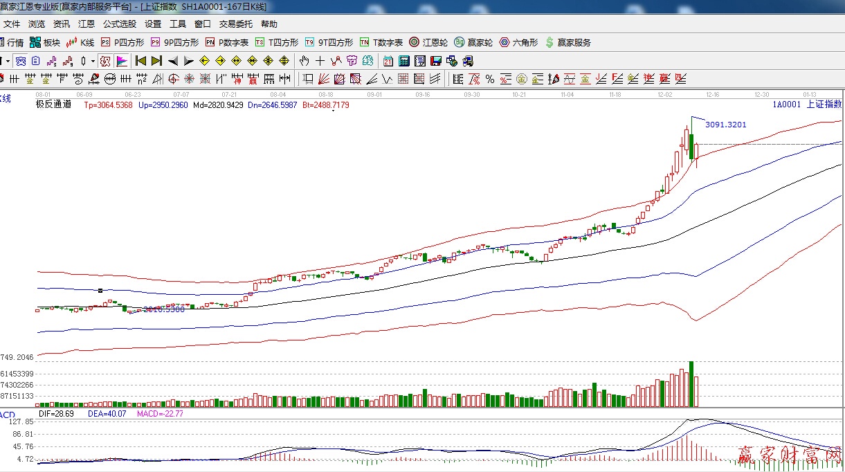 ★依據贏家江恩系統波段百分比提示:今日指數回踩江恩120度支撐線后,震蕩回升,上方阻力依然是0度位置3041點—3111點。