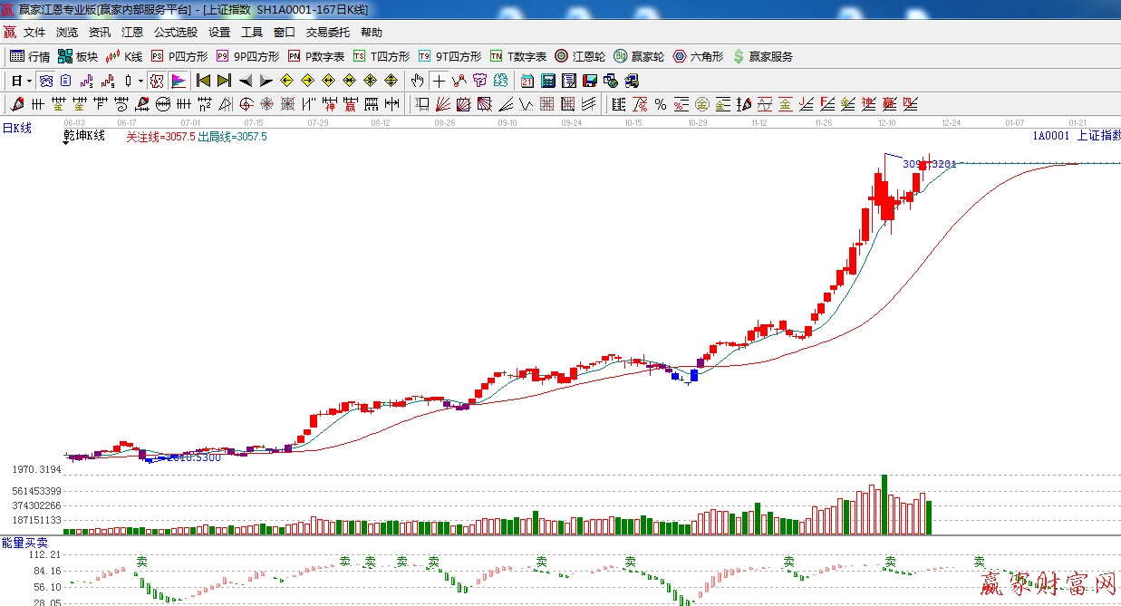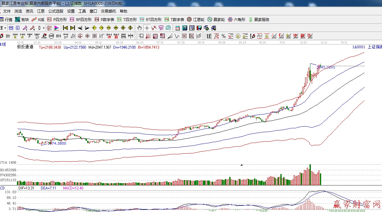 ★依據贏家江恩系統極反通道提示:指數沿紅色外軌線,繼續震蕩走高,依據規則外軌線不破,整體看多趨勢不變。