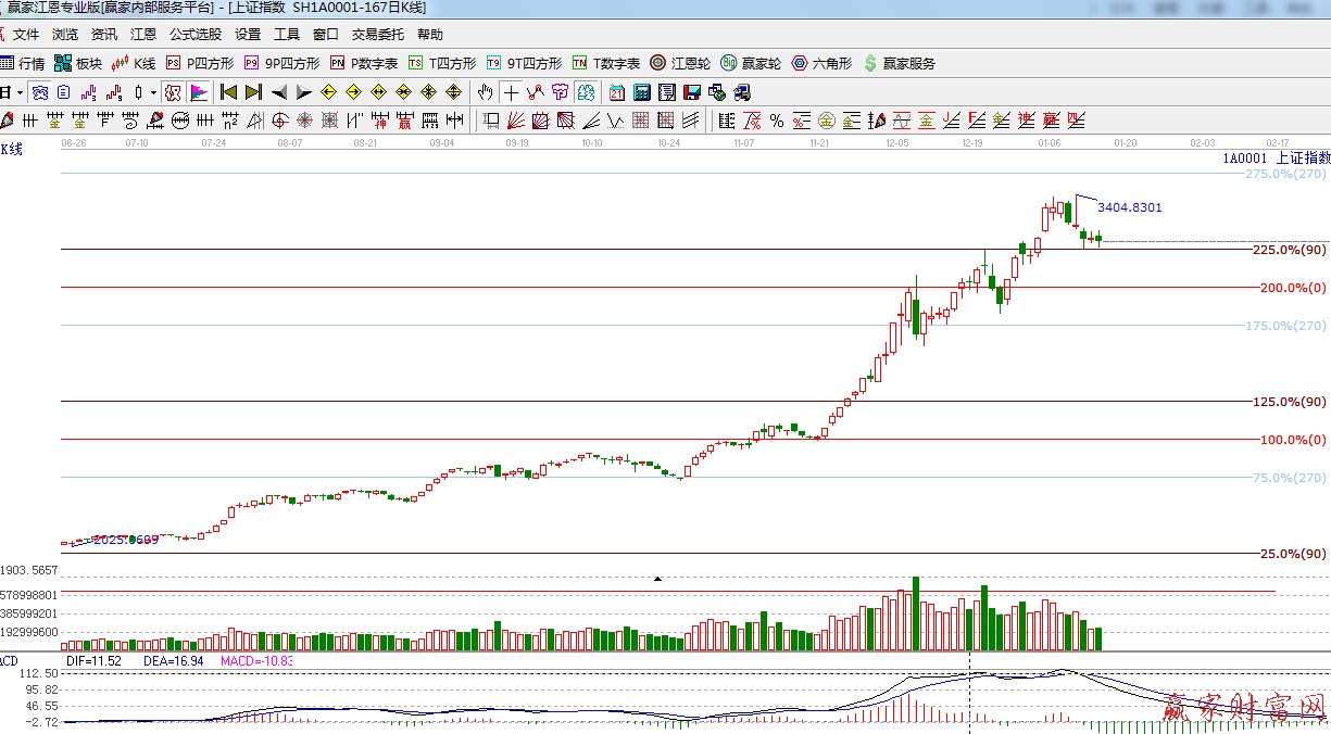 江恩看盤綜述:依據贏家江恩技術工具分析得出:周三早盤滬指沖高回落,午后震蕩走低,尾盤再次以江恩90度線獲支撐回升,終盤小陰星報收,量能持續萎縮,依據規則江恩90度位置整理不破仍有繼續反彈的節奏,需留意的時間窗口,60分周期窗口是15日11點附近,另外,24節氣"大寒"1月20日也是比較重要的時間窗口。